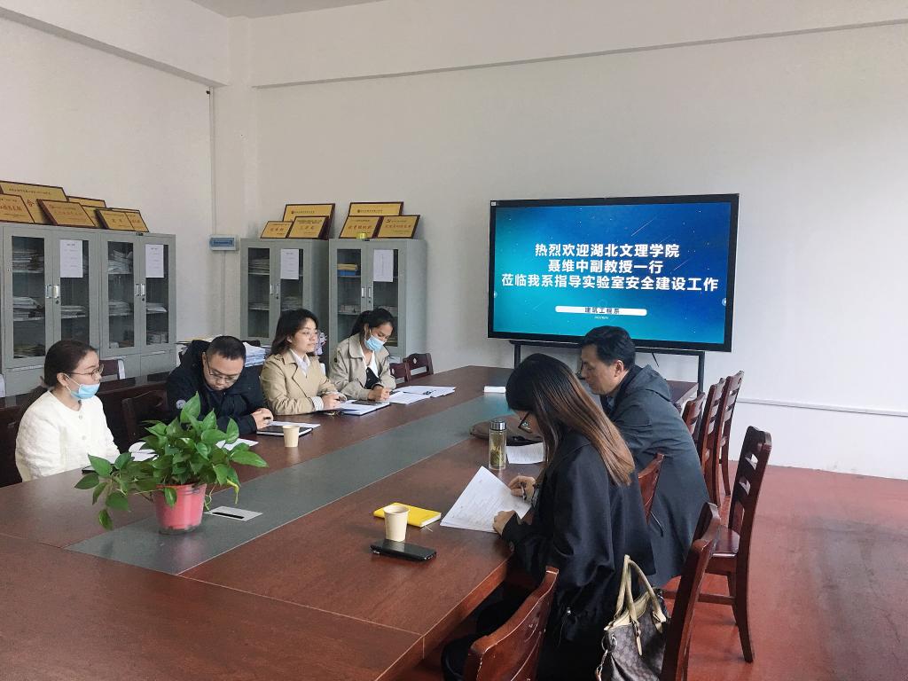 (建工系 马缓)为确保实验室安全运行,10月25日,建筑工程系邀请湖北文理学院土木工程与建筑学院实践教学中心主任聂维中、实验室主任陈鹏一行莅临指导实验室安全建设工作。