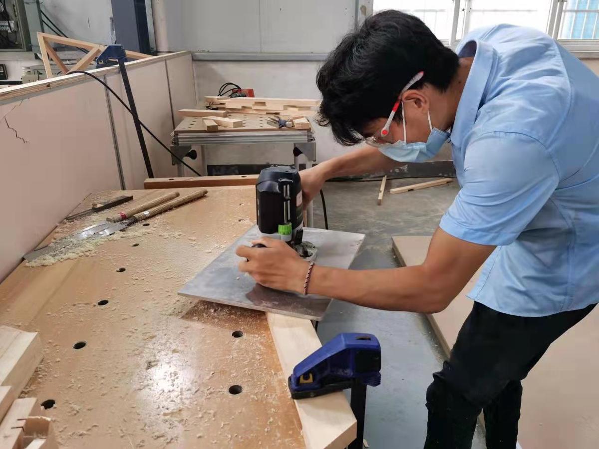 为什么会成为木工项目的选手?陈逸龙告诉记者,专科阶段在湖北生态工程职业技术学院学家具设计与制造。当时觉得这个专业很实用,后来越学越感兴趣,而且在专业上成绩突出,“主要是技能方面比较好!”