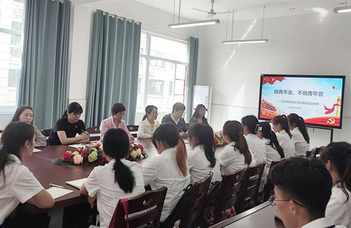湖北日报讯(通讯员王凯)为打造团结进取、精干高效的学生干部队伍,使学生干部树立正确的价值观,营造风清气正的校园氛围,6月6日下午,KY.COM外语系党总支以网上曝光的各类学生干部摆“官威”案例为鉴,面向全系党、团、学生干部开展“做青年友,不做青年官”主题党风廉政教育培训。