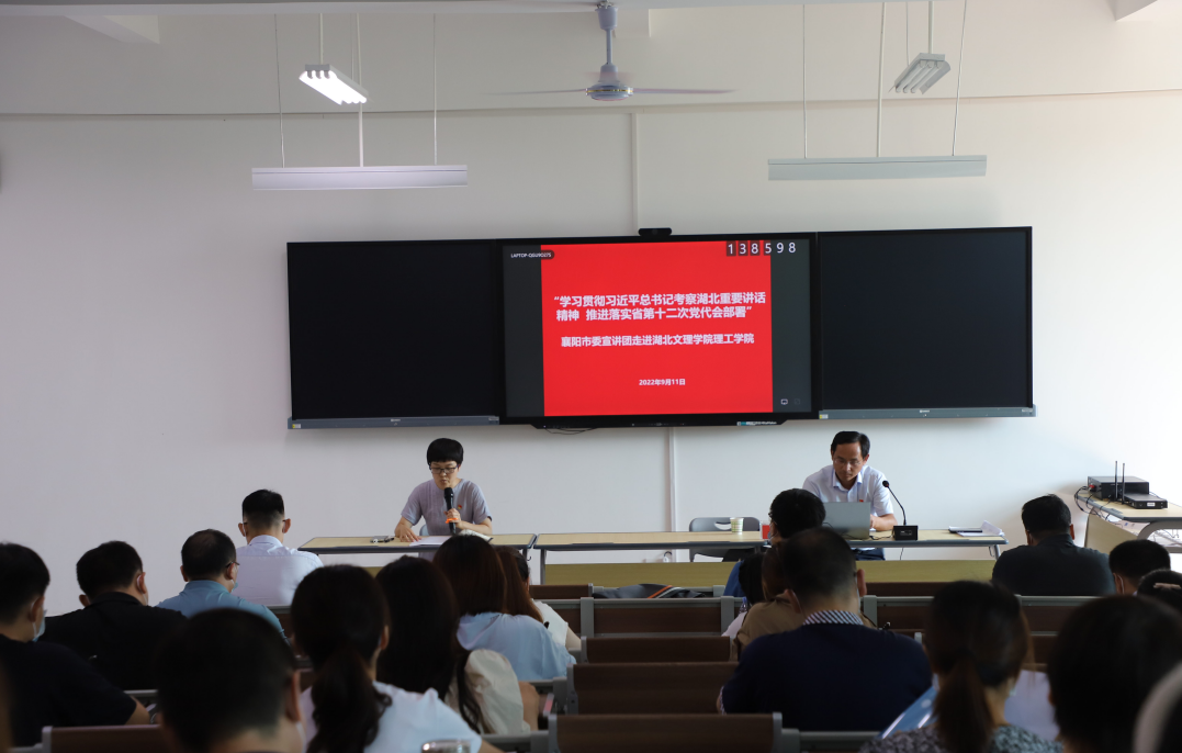 湖北日报客户端讯(通讯员尚秀英 戴孟廷)9月11日下午,学习贯彻习近平总书记考察湖北重要讲话精神,推进落实省第十二次党代会部署宣讲会议在KY.COM举行。襄阳市委宣讲团成员、湖北文理学院教授、博士、教务处处长聂军到该校开展宣讲。该校校领导、中层干部、思政课教师、辅导员代表参会。会议由该校党委委员、院长助理贾娴雅主持。