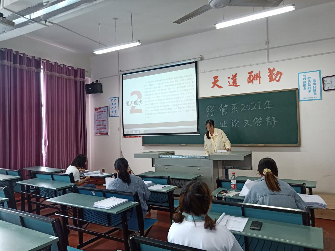 为保证我系毕业生毕业论文的质量,进一步审查我系毕业论文工作,经济与管理学系于2021年5月25日在J4-304等五个教室进行2021届毕业生毕业论文答辩工作。