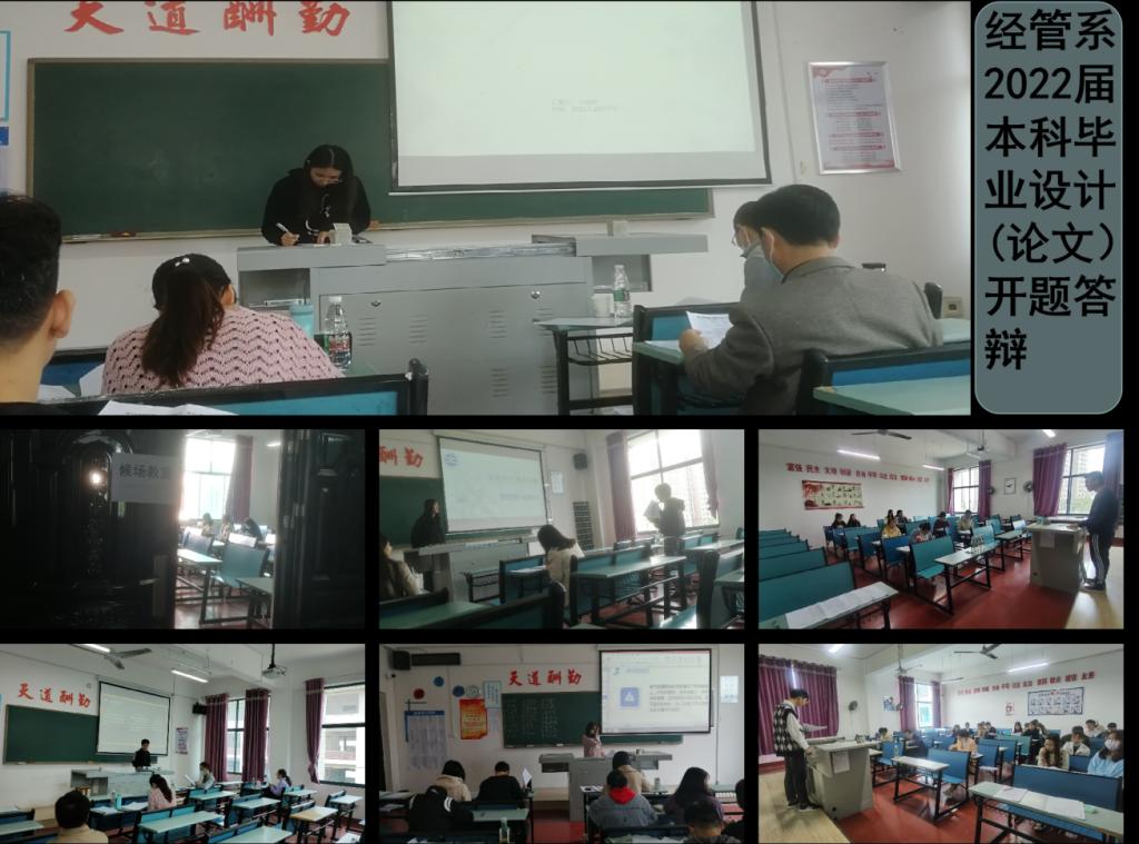 (经管系 吕星)2021年10月7日,经管系在第四教学楼J4-315、J4-316等五个教室,进行了2022届本科毕业论文开题答辩。本次开题答辩共有18级学生143人参加,涵盖经济与管理学系的国际经济与贸易、投资学、人力资源管理和旅游管理4个专业。参与本次开题答辩的导师包括经管系刘铁主任、朱靖主任等16位老师。教学督导刘学林教授和教务处秦晓磊老师对本次开题答辩进行了抽检,刘教授参与了部分学生的开题答辩,针对论文设计提出了建设性指导意见。本次开题答辩设置有1个候场教室,有5位学生答辩秘书共同参与,他们细心负责地协助完成了开题答辩工作。