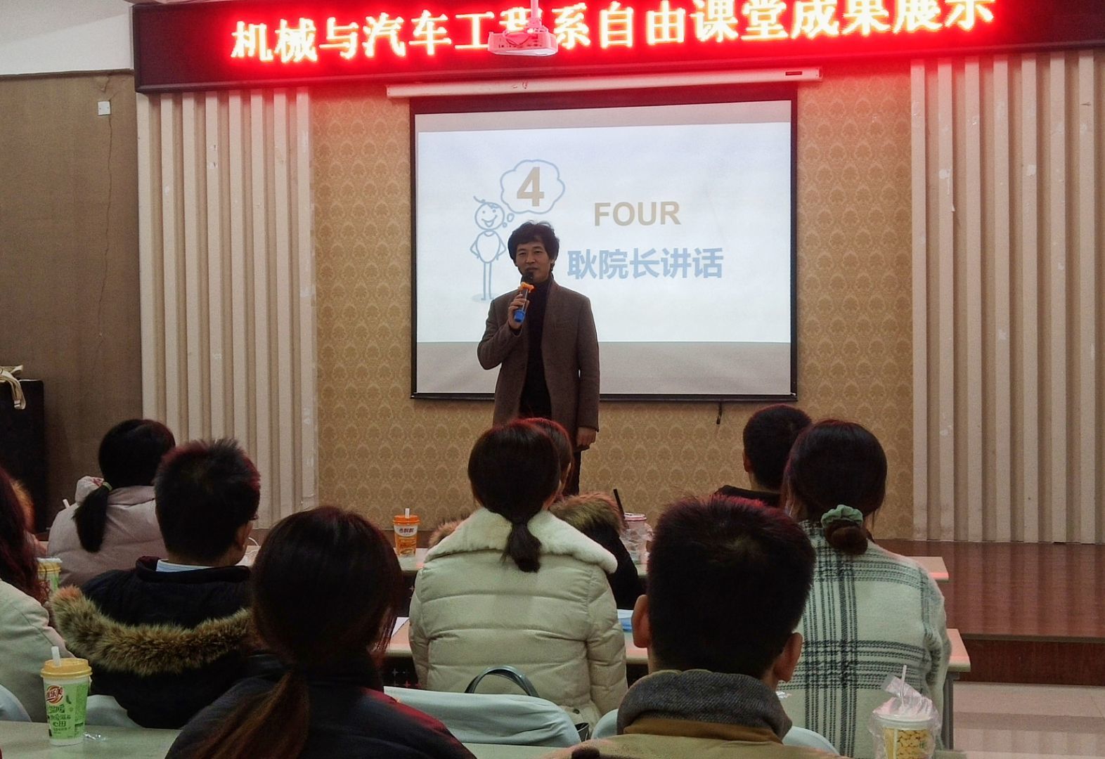 (机械系 何佳、全春艳)为培养学生逻辑思维与语言表达能力,机械系进行了“自由课堂”系列活动,并于12月14日在一教104报告厅举行了“自由课堂”成果汇报,出席本次活动的嘉宾有:常务副院长耿帮才、学工处处长章莉、各系党总支副书记、分团委书记及自由课堂授课教师。