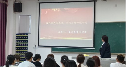 活动开始,“星火筑梦”宣讲团成员之一韩悦悦同学为大家简要介绍了井冈山精神,井冈山精神是马克思主义中国化的理论结晶,其核心概括为24个字:“坚定信念、艰苦奋斗,实事求是、敢闯新路,依靠群众、勇于胜利。”全体成员认真聆听、缅怀历史,重温了井冈山根据地艰苦卓绝的创建过程,领会到井冈山斗争的厚重历史,也更加深刻地认识到今天幸福生活来之不易,感受到老一辈的不屈不挠、 艰苦奋斗的精神和高尚情操。随后“星火筑梦”宣讲团为大家播放了《井冈山》这部电影,最后一起合照留念。