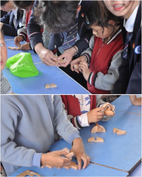 15点,“做小小鲁班,传智慧匠心”活动正式开始,本次活动我们结合系部特色“鲁班科技节”精心准备了“解密鲁班锁”和“探索建筑之美,体验模型之乐”两个活动。大朋友带领小朋友一起在解密鲁班锁称重接触了解非遗文化“榫卯”、领悟中国工匠精神;在房屋模型制作中增强思考能力、动手操作能力和空间想象力。