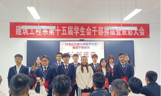 (建工系 汪纪婷、陆康乐)青春奋斗新时代,奋进逐梦新征程。为了进一步优化我系学生干部队伍建设,增强学生干部的凝聚力和整体战斗力,促进学生工作的发展,更好地发挥学生干部密切联系学校和师生的桥梁纽带作用,为同学们提供锻炼自我、提升能力、展示才华的舞台。2023年11月9日,建筑工程系在1教207召开了第十五届学生会干部换届暨表彰大会,系副主任刘琦良、系党总支副书记付明星、系教学副主任张巧巧、系学生支部书记汪纪婷、系分团委书记覃璇、系辅导员路扩老师出席会议,建筑工程系第十四届学生会干部、第十五届全体学生会成员和2023级全体新生参加会议。