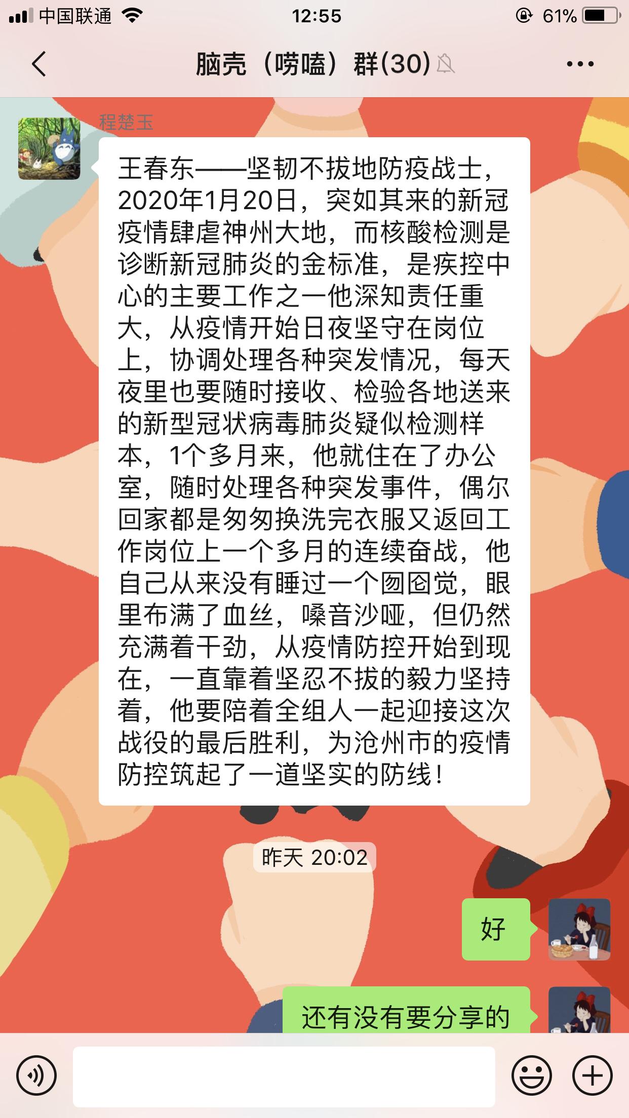 此外,同学们还纷纷分享了抗击疫情——最令我感动的瞬间”人物、故事,学习他们的奉献和担当精神。并通过书法、绘画、拍摄小视频等多种形式表达了自己对祖国想说的话以及情感和誓言。