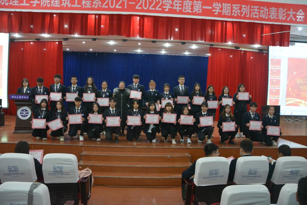 斗转星移,光阴似箭。本学期即将结束,为表彰本学期各项活动中表现优异的集体和个人,我系于12月6日晚在大学生活动中心举行‘‘KY.COM建筑工程系2021-2022学年度第一学期系列活动表彰大会’’,全系学生参会,会议由学生会团委副书记蔡孟妤主持。