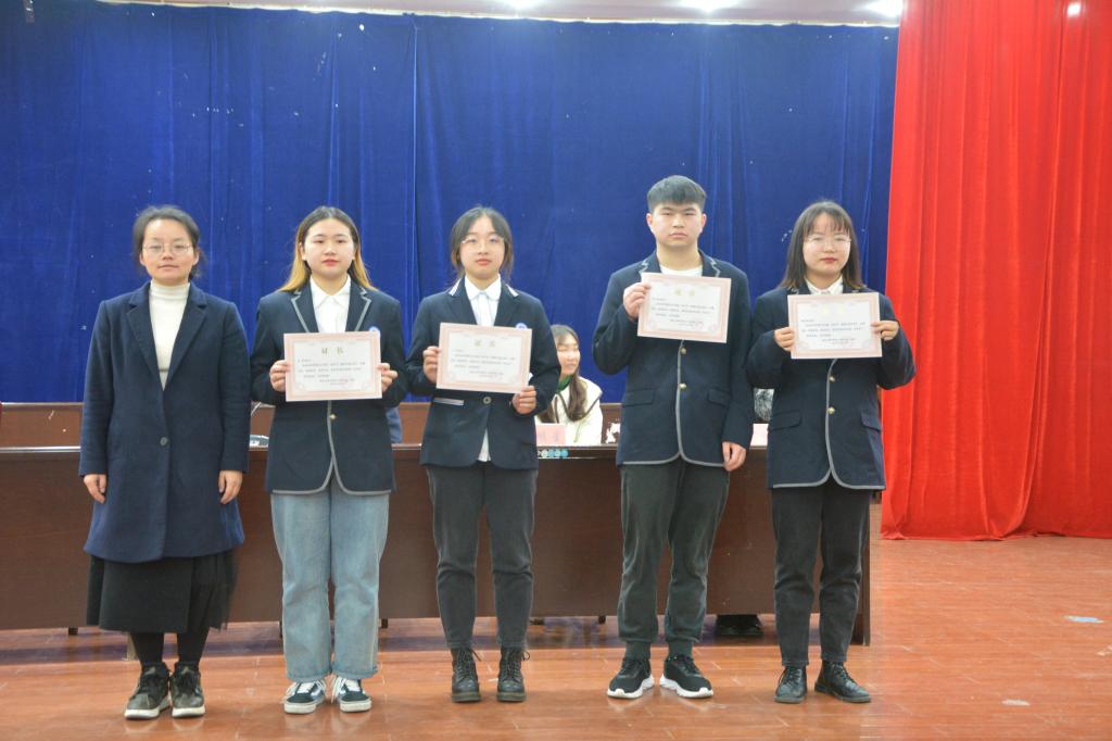 学生会主席蒲炜做工作总结,系学生党支部书记、分团委书记、辅导员覃璇宣读关于表彰本学期系列活动获奖人员的决定,系辅导员路扩为迎新活动先进个人颁奖,系学生党支部书记 、分团委书记、辅导员覃璇为运动会先进个人颁奖,系副主任张巧巧为暑期社会实践视频拍摄获奖人员颁奖,系党总支副书记付明星为寝室文化节获奖寝室颁奖,先进个人代表甯中心宇发言,系副主任刘琦良总结讲话。